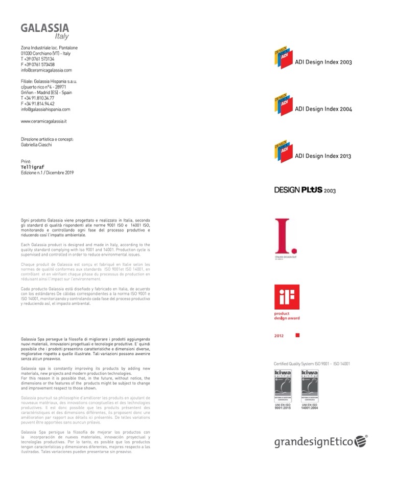 Cada producto Galassia está diseñado y fabricado en Italia, de acuerdo