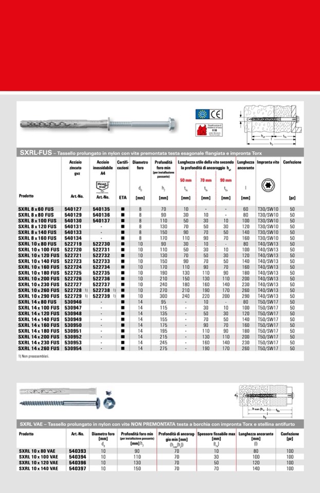 SXRL VAE – Tassello prolungato in nylon con vite NON PREMONTATA testa a borchia con impronta Torx e stellina antifurto