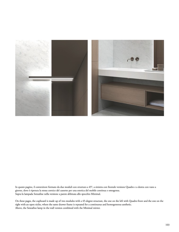 On these pages, the cupboard is made up of two modules with a 45-degree structure, the one on the left with Quadro front and the one on the