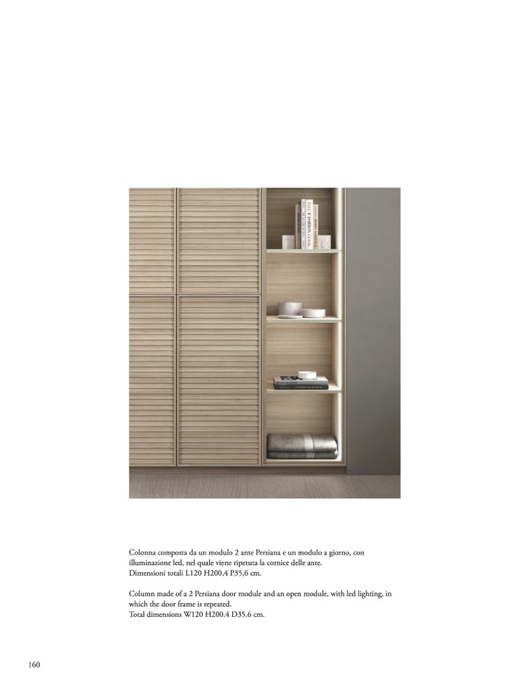Column made of a 2 Persiana door module and an open module, with led lighting, in