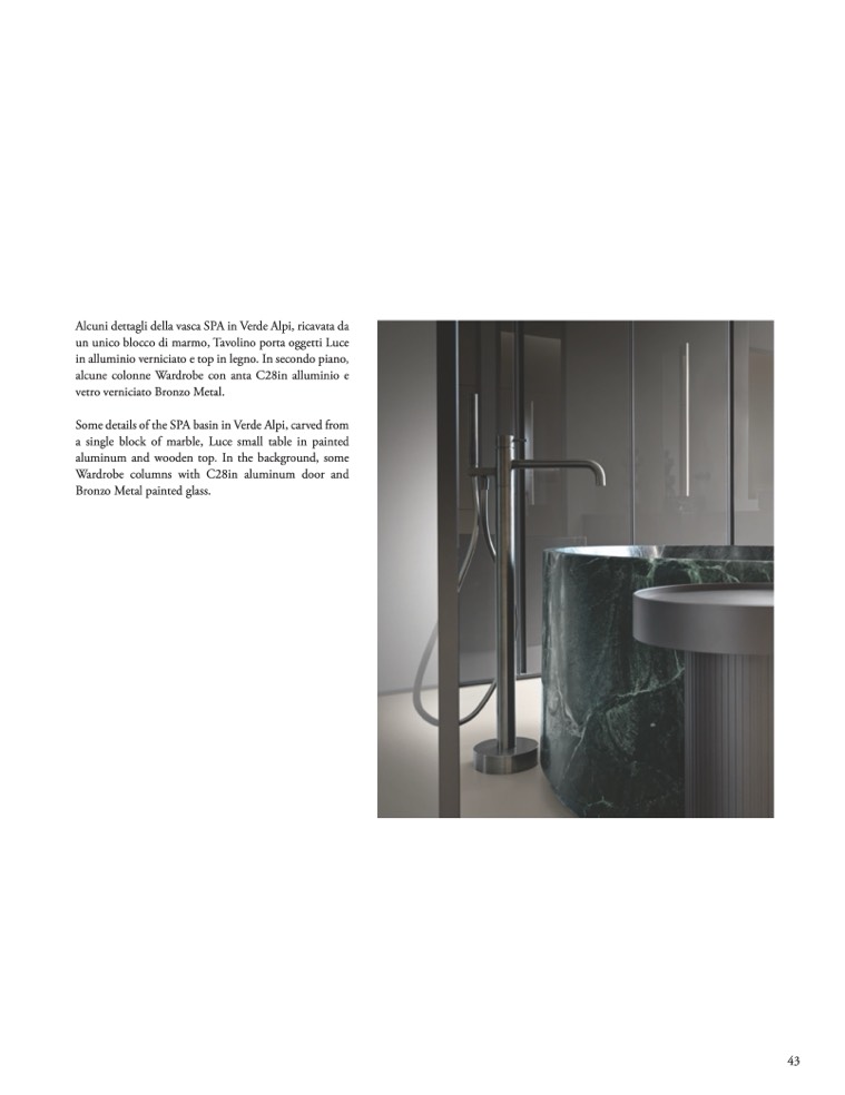 Alcuni dettagli della vasca SPA in Verde Alpi, ricavata da