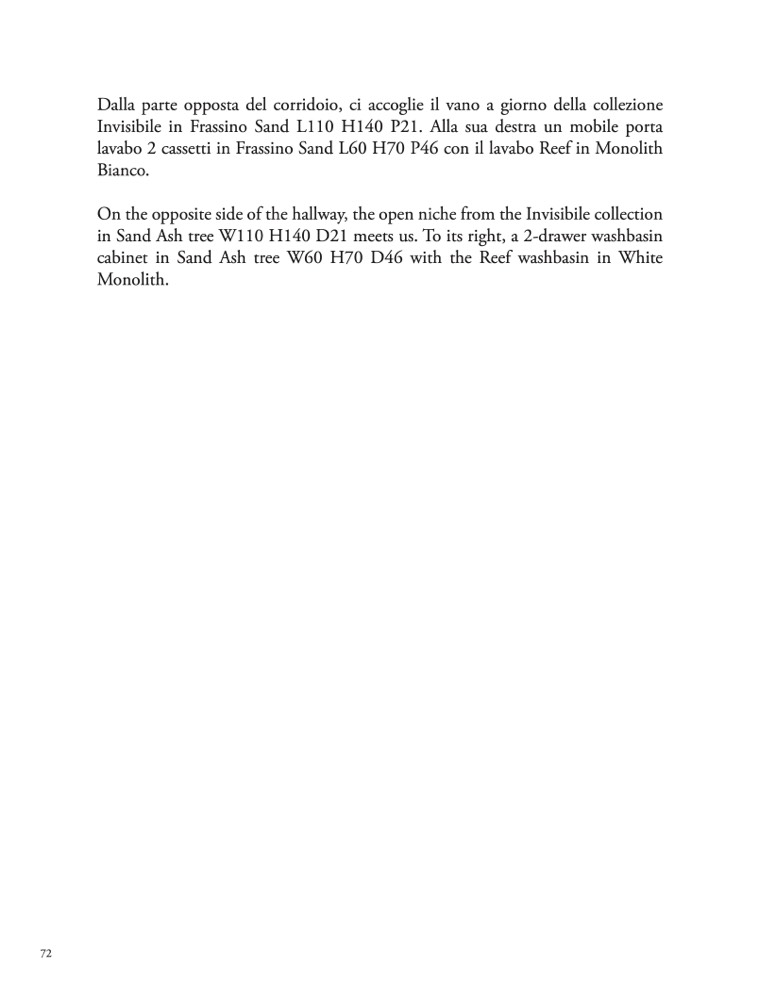 Invisibile in Frassino Sand L110 H140 P21. Alla sua destra un mobile porta