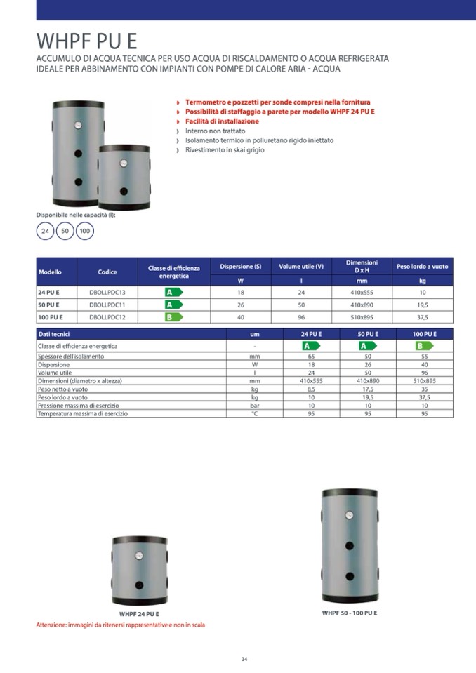 Possibilità di staffaggio a parete per modello WHPF 24 PU E