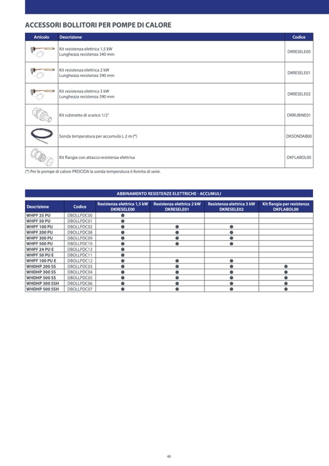(*) Per le pompe di calore PROCIDA la sonda temperatura è fornita di serie.