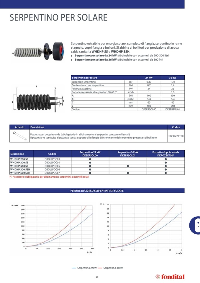 (*) Accessorio obbligatorio per abbinamento serpentini a pannelli solari