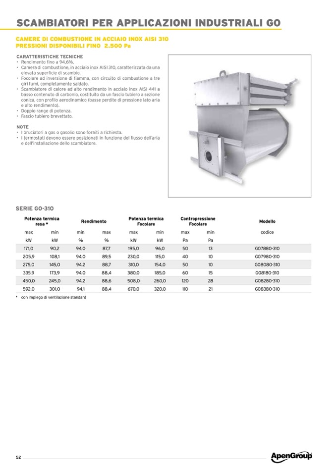 • Scambiatore di calore ad alto rendimento in acciaio inox AISI 441 a