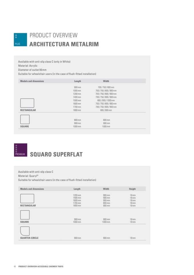 40 PRODUCT OVERVIEW ACCESSIBLE SHOWER TRAYS