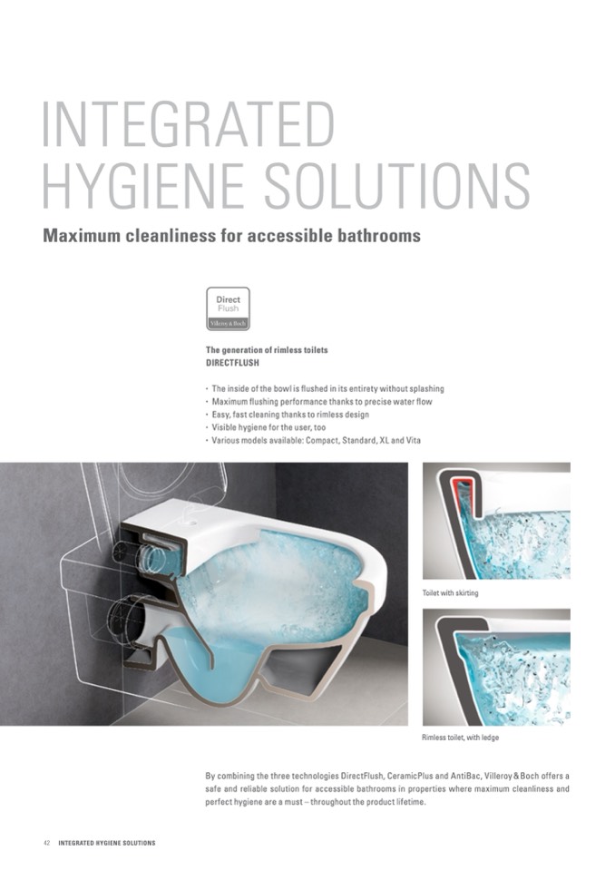 By combining the three technologies DirectFlush, CeramicPlus and AntiBac, Villeroy&Boch offers a