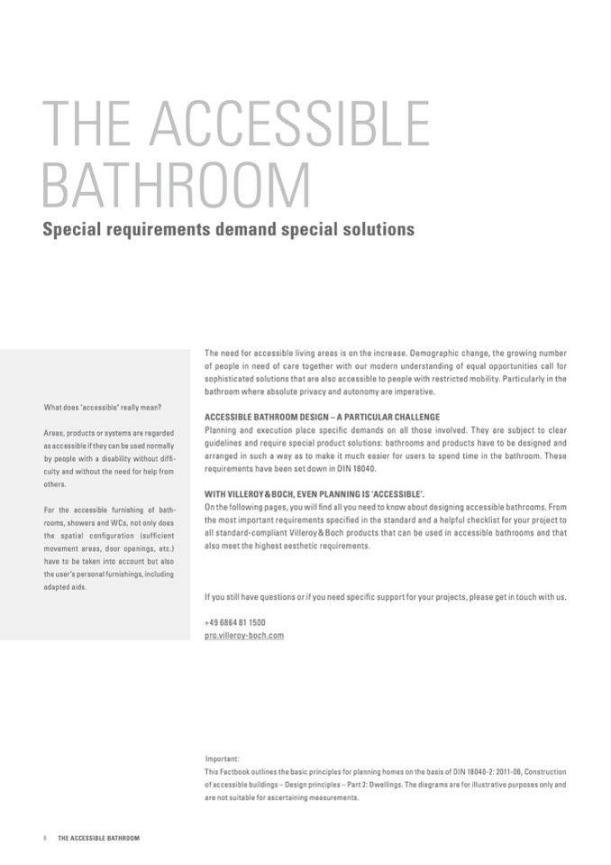 guidelines and require special product solutions: bathrooms and products have to be designed and