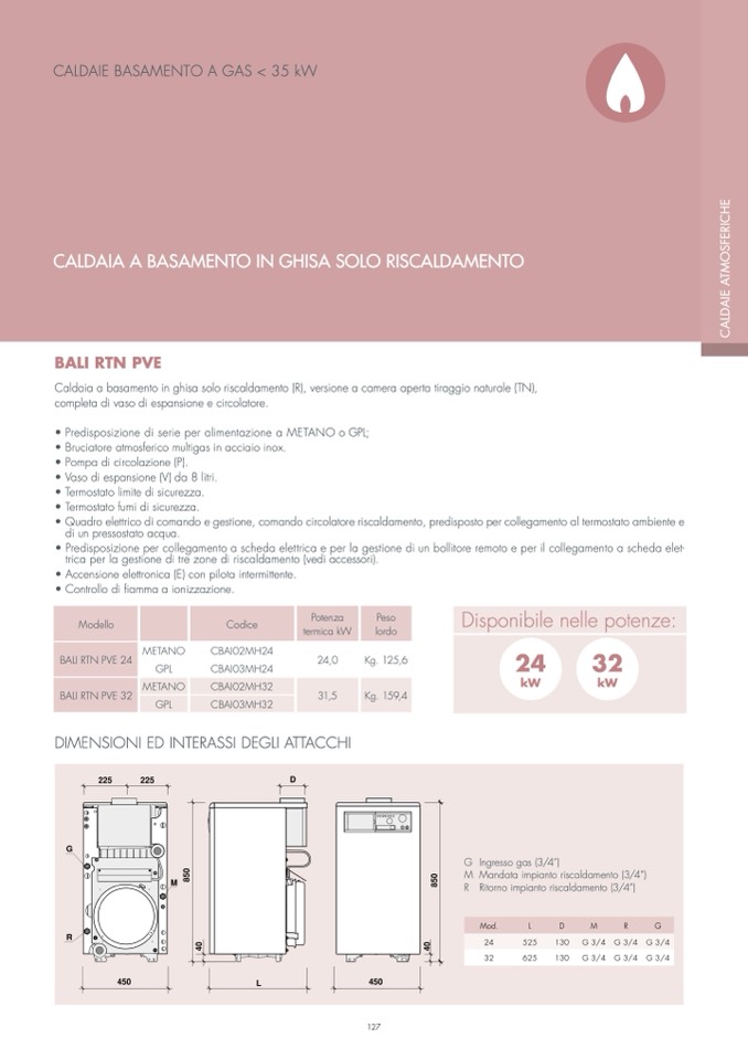 Caldaia a basamento in ghisa solo riscaldamento (R), versione a camera aperta tiraggio naturale (TN),