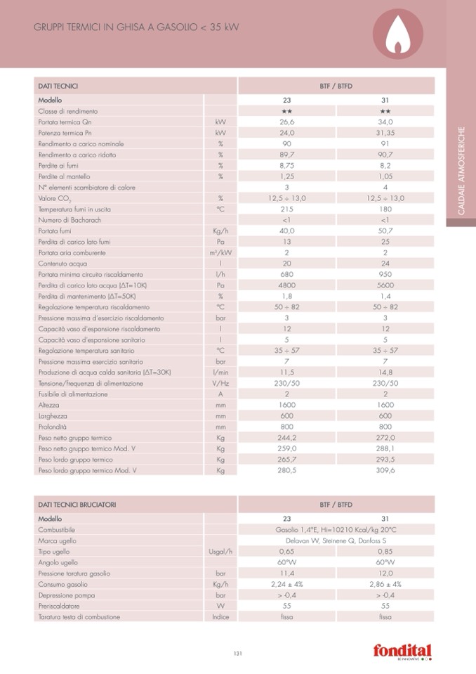 Gasolio 1,4°E, Hi=10210 Kcal/kg 20°C