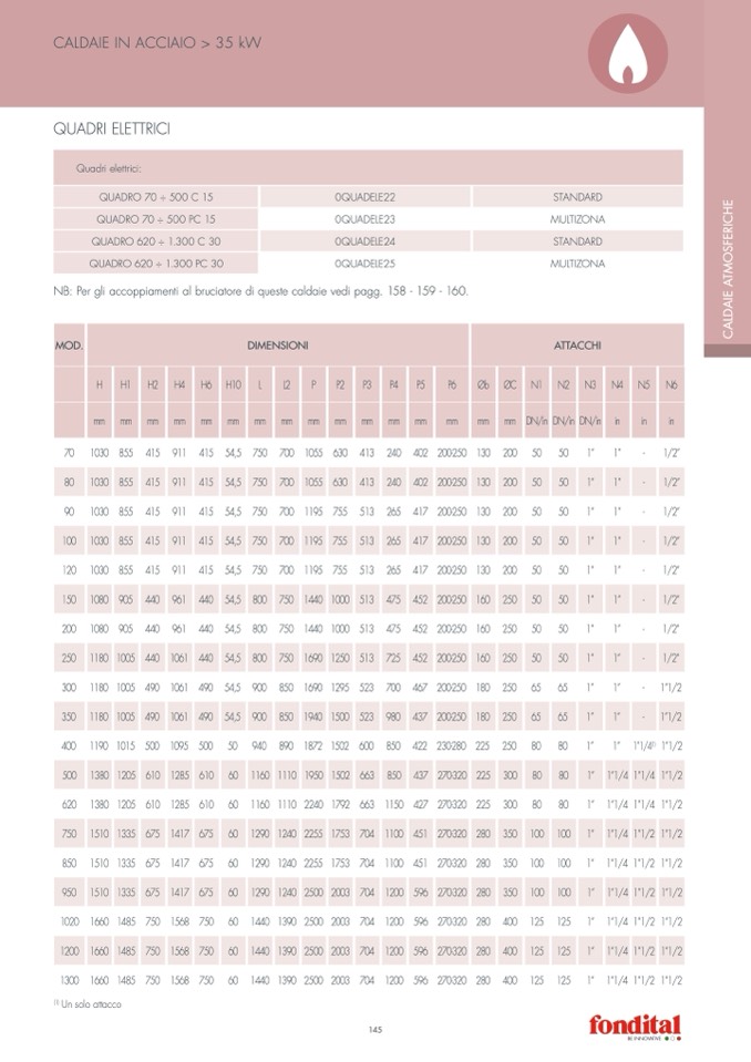 NB: Per gli accoppiamenti al bruciatore di queste caldaie vedi pagg. 158 - 159 - 160.