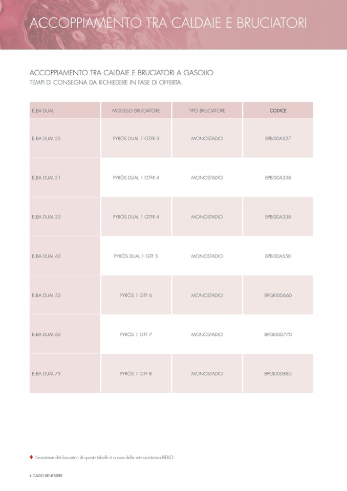 ♦ L’assistenza dei bruciatori di queste tabelle è a cura della rete assistenza RIELLO.