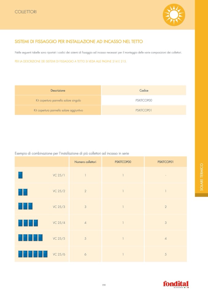 Nelle seguenti tabelle sono riportati i codici dei sistemi di fissaggio ad incasso necessari per il montaggio delle varie composizioni dei collettori.