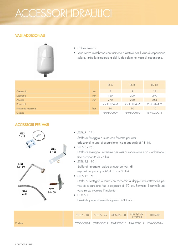 addizionali e vasi di espansione fino a capacità di 18 litri.