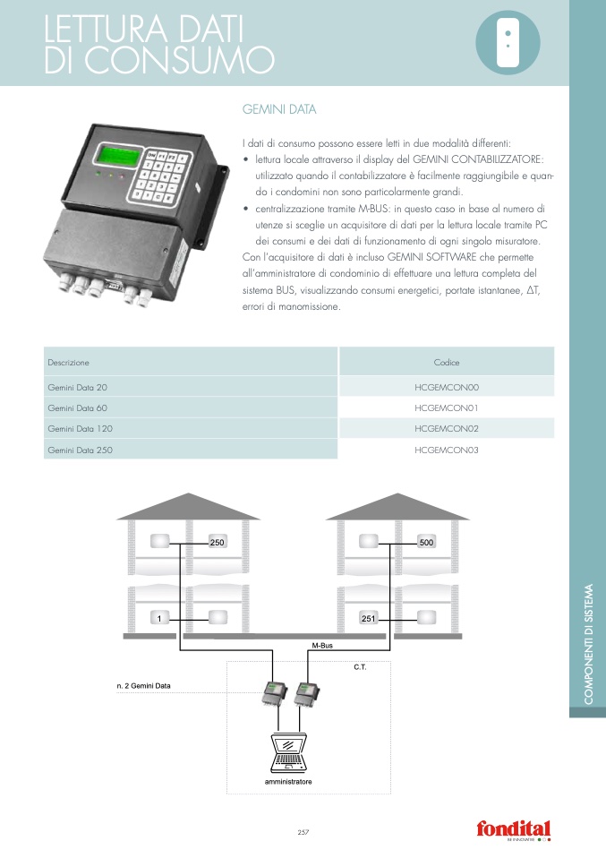 • lettura locale attraverso il display del GEMINI CONTABILIZZATORE:
