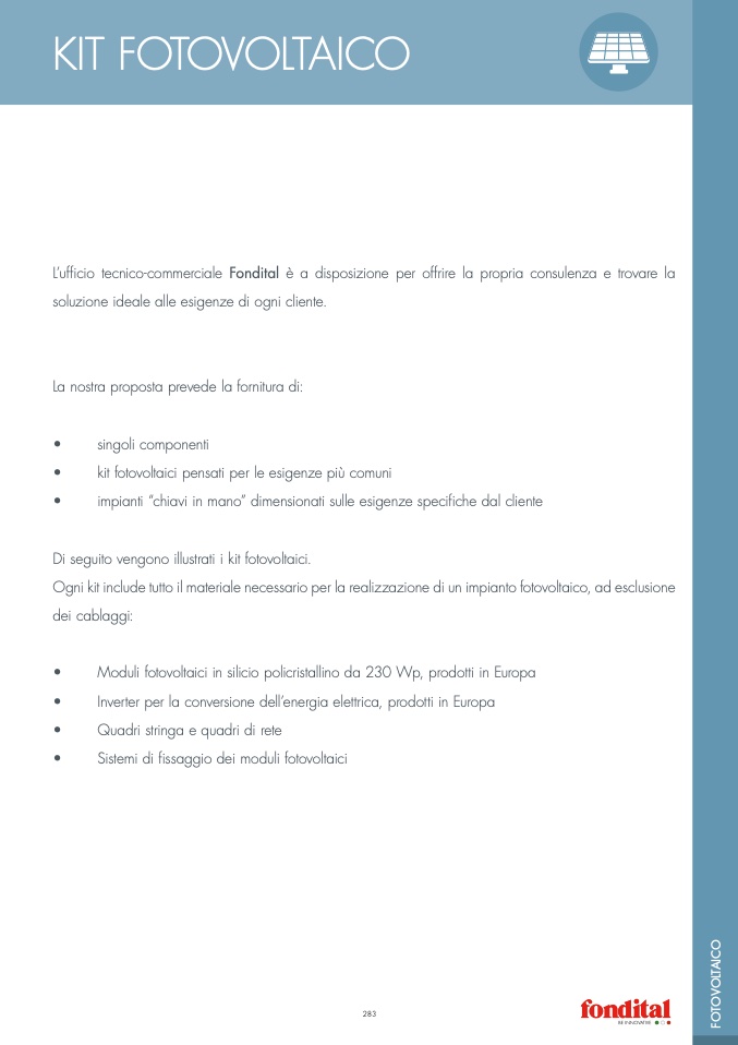 Ogni kit include tutto il materiale necessario per la realizzazione di un impianto fotovoltaico, ad esclusione