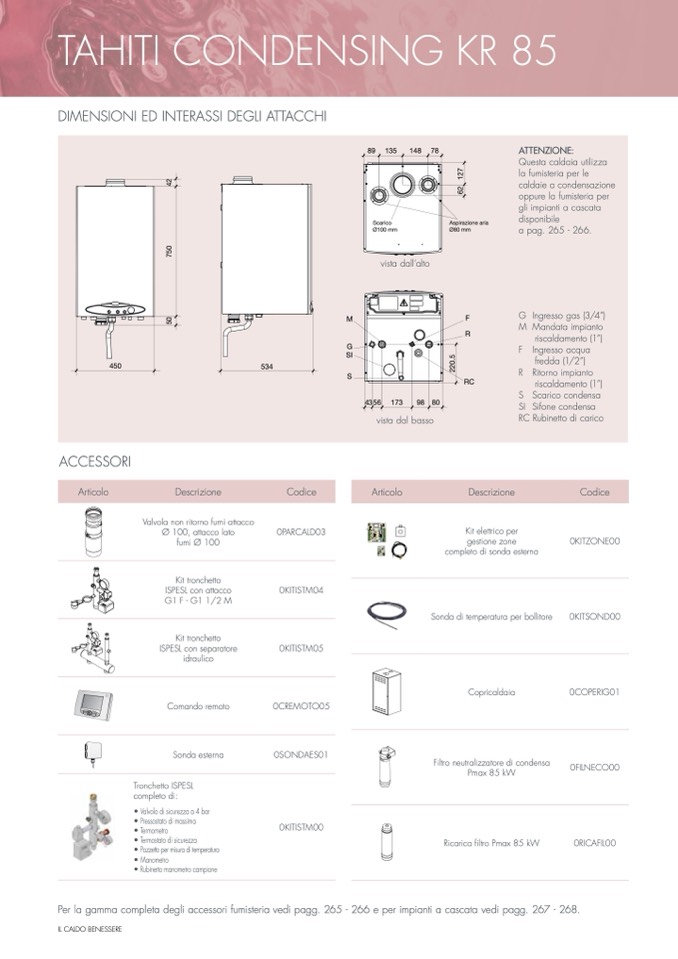 Per la gamma completa degli accessori fumisteria vedi pagg. 265 - 266 e per impianti a cascata vedi pagg. 267 - 268.