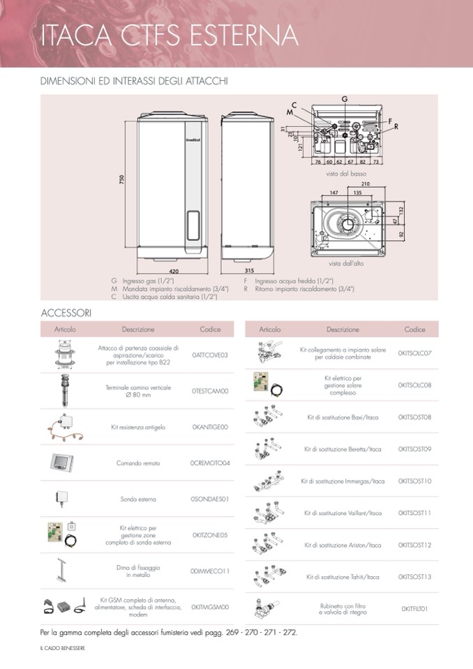 Per la gamma completa degli accessori fumisteria vedi pagg. 269 - 270 - 271 - 272.