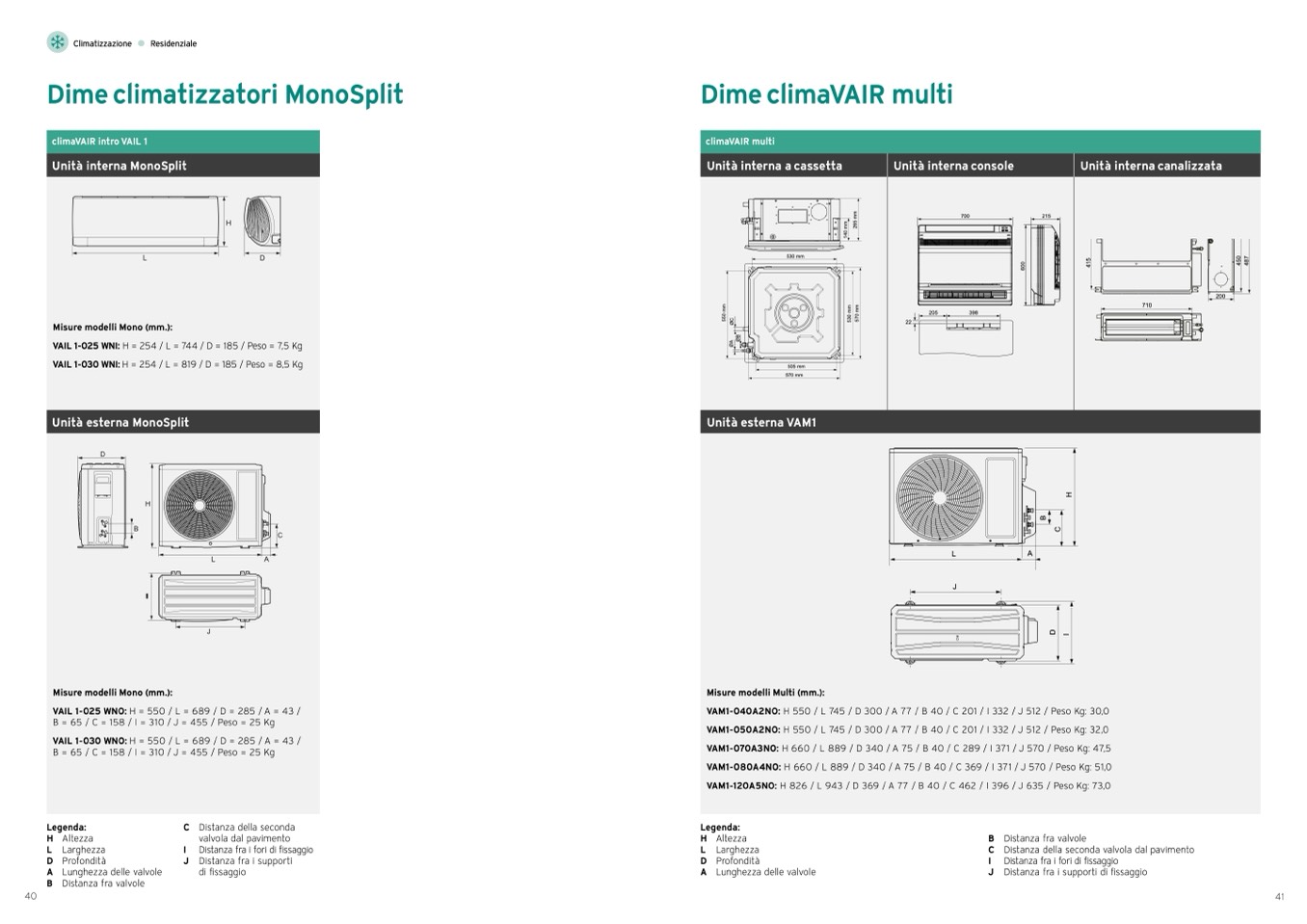 VAM1-120A5NO: H 826 / L 943 / D 369 / A 77 / B 40 / C 462 / I 396 / J 635 / Peso Kg: 73,0