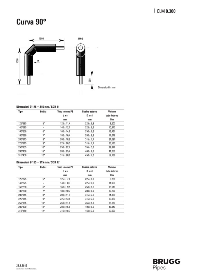 Dimensioni Ø 125 ÷ 315 mm / SDR 17