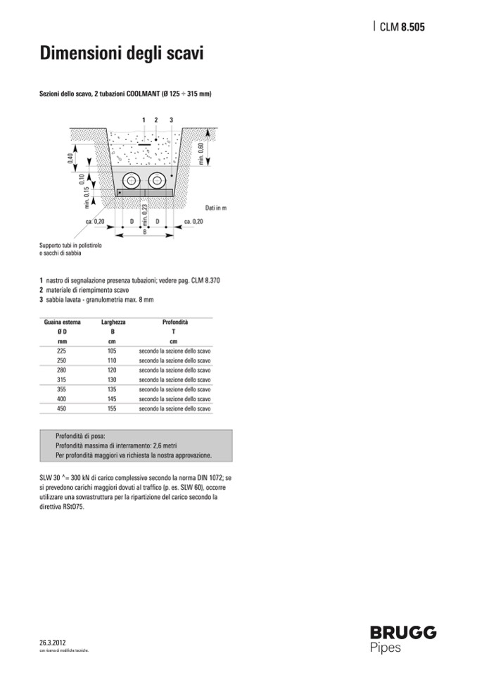 Profondità massima di interramento: 2,6 metri