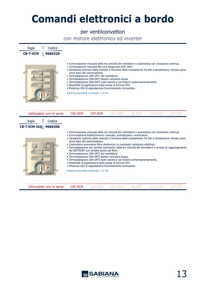 • Commutazione manuale delle tre velocità del ventilatore o automatica con variazione continua.
