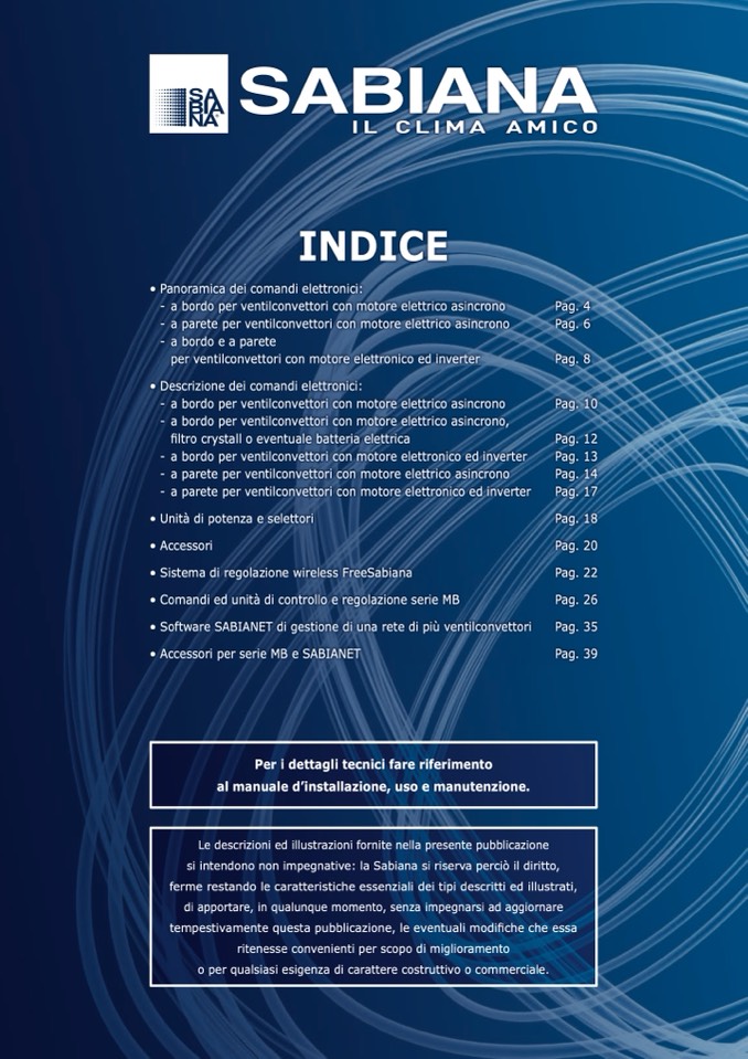 • Software SABIANET di gestione di una rete di più ventilconvettori