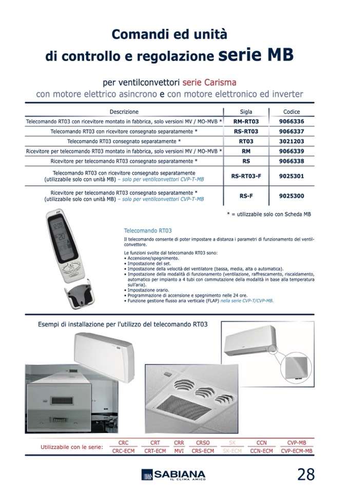 Telecomando RT03 consegnato separatamente *
