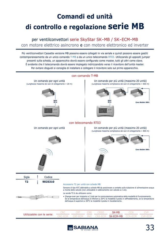 Più ventilconvettori Cassette versione MB possono essere collegati in via seriale e quindi possono essere gestiti
