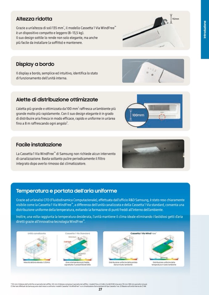 (1) Nei test effettuati da Samsung sono stati messi a confronto i modelli Cassetta 1 Via WindFree
