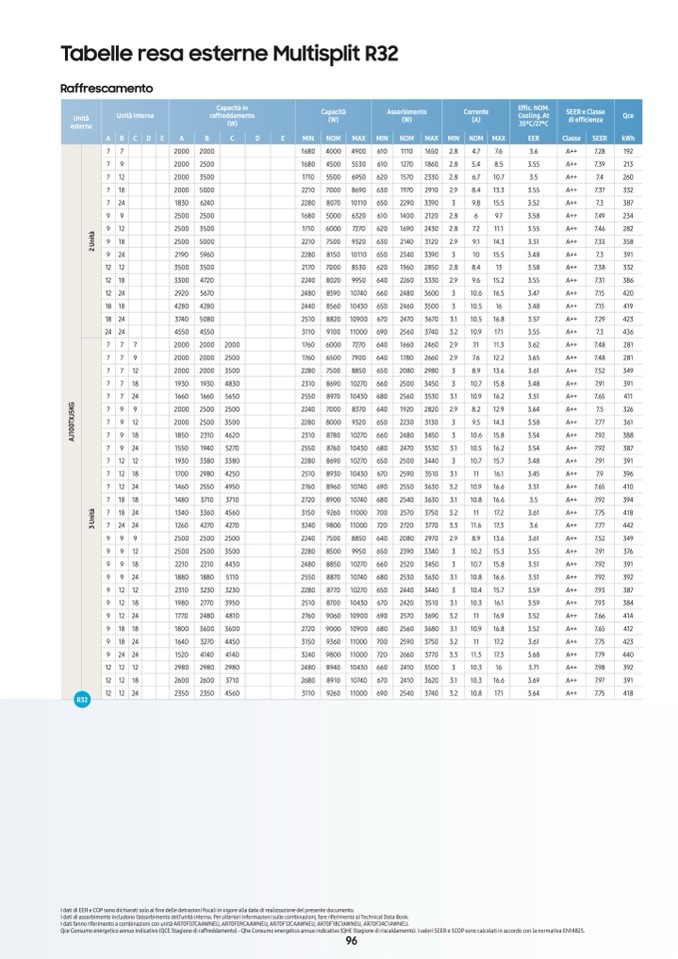 I dati di assorbimento includono l’assorbimento dell’unità interna. Per ulteriori informazioni sulle combinazioni, fare riferimento al Technical Data Book.