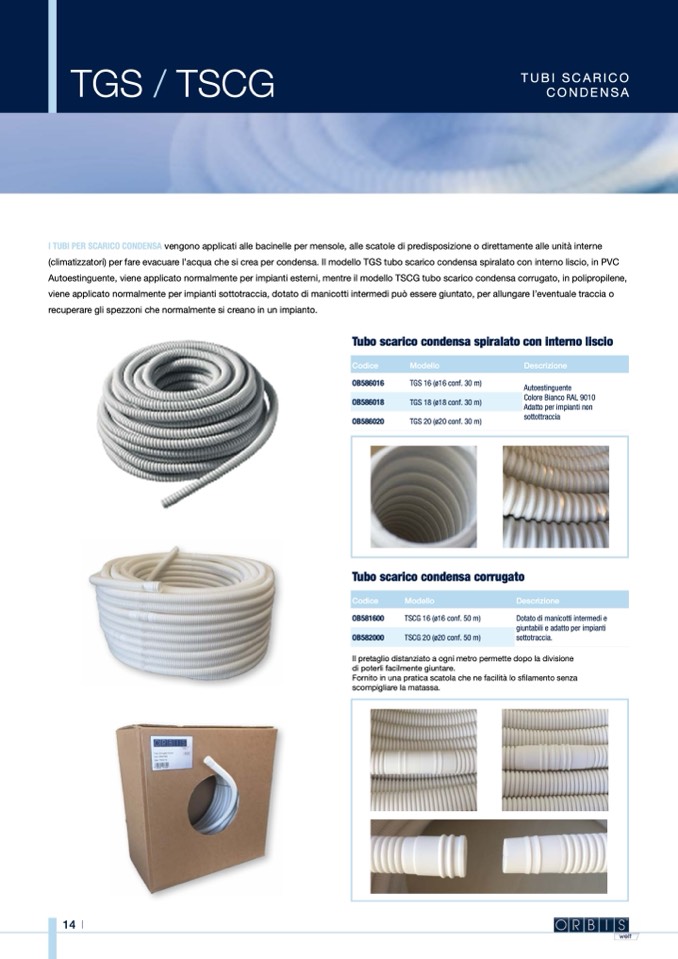 (climatizzatori) per fare evacuare l’acqua che si crea per condensa. Il modello TGS tubo scarico condensa spiralato con interno liscio, in PVC