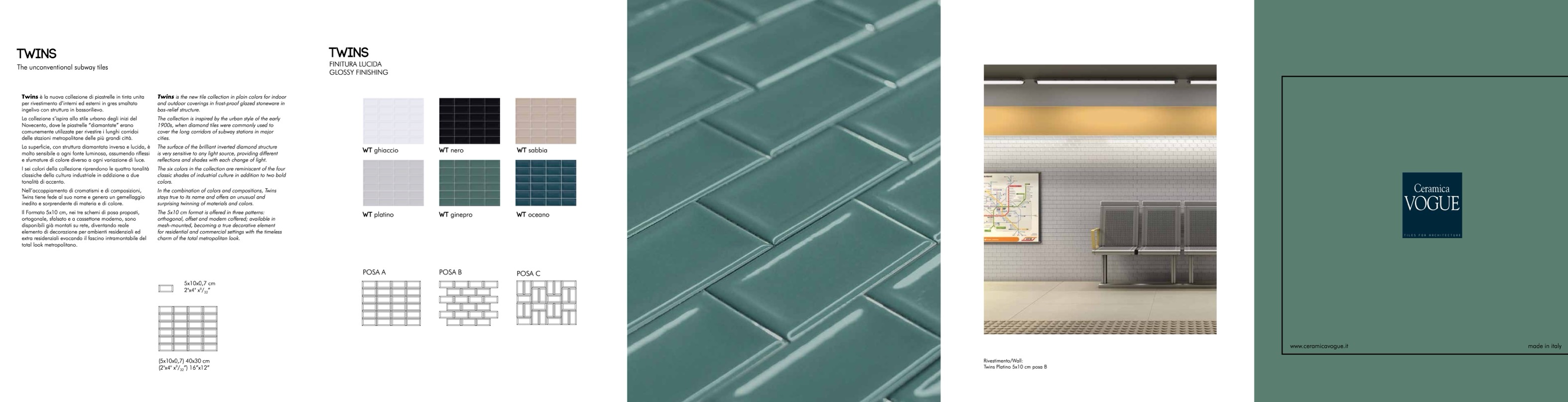 Il Formato 5x10 cm, nei tre schemi di posa proposti,