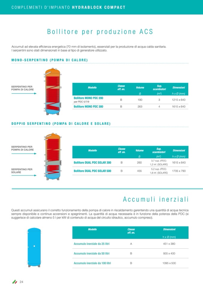 Questi accumuli assicurano il corretto funzionamento della pompa di calore in riscaldamento garentendo una quantità di acqua tecnica
