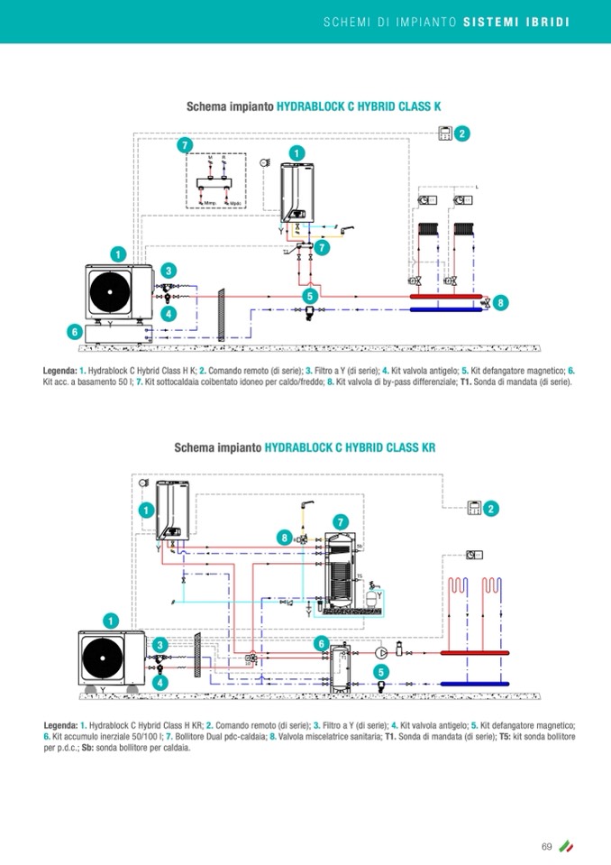 Legenda: 1. Hydrablock C Hybrid Class H K; 2. Comando remoto (di serie); 3. Filtro a Y (di serie); 4. Kit valvola antigelo; 5. Kit defangatore magnetico; 6.