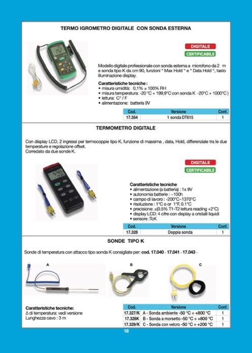 • misura temperatura: -20 °C + 199,9°C con sonda K -20°C + 1000°C )