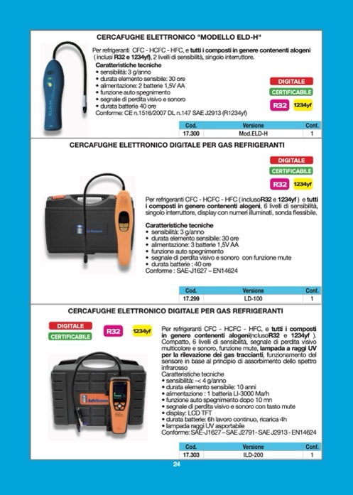 ( inclusi R32 e 1234yf), 2 livelli di sensibilità, singolo interruttore.