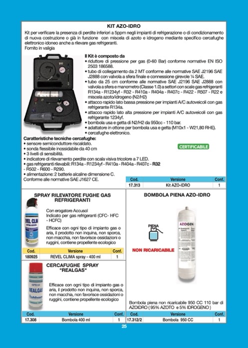 Kit per verificare la presenza di perdite inferiori a 5ppm negli impianti di refrigerazione o di condizionamento
