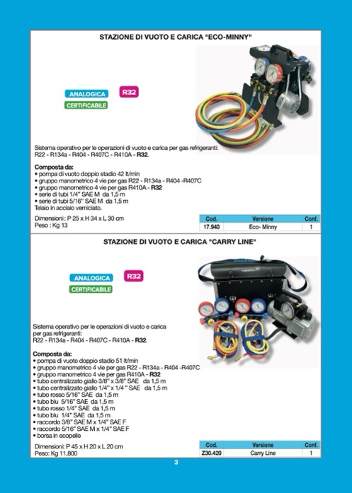 R22 - R134a - R404 - R407C - R410A - R32.