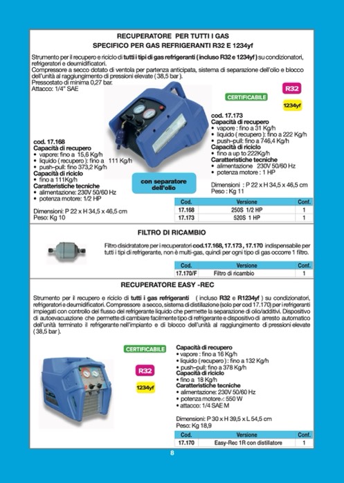 refrigeratoriedeumidificatori.Compressore asecco,sistemadidistillazione(solopercod17.170)perirefrigeranti