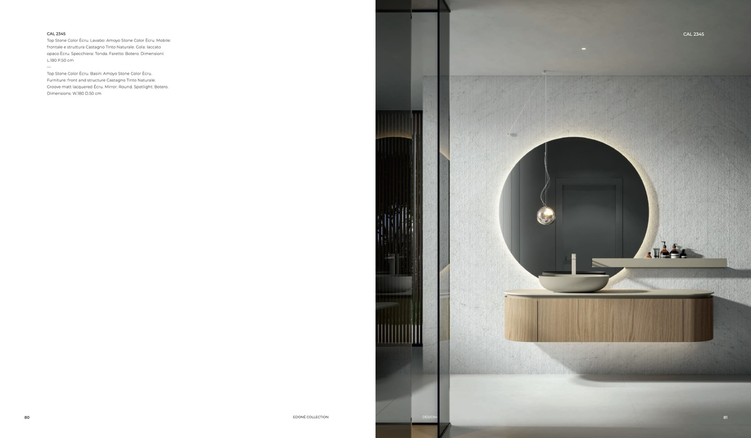 opaco Ècru. Specchiera: Tonda. Faretto: Botero. Dimensioni: