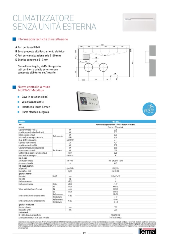 1. Valore misurato secondo la norma armonizzata EN14511. 2. Regolamento Delegato UE N.626/2011 relativo alla nuova etichettatura indicante il consumo di energia dei condizionatori d'aria. 3. La perdita di refrigerante contribuisce al cambiamento climatico. In caso di rilascio nell'atmosfera, i