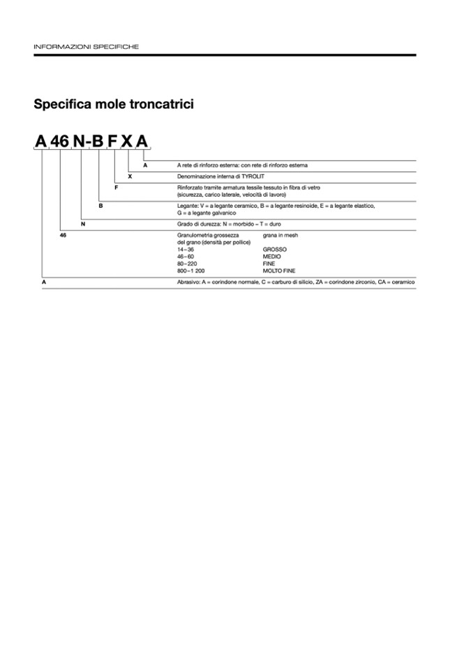 Abrasivo: A = corindone normale, C = carburo di silicio, ZA = corindone zirconio, CA = ceramico