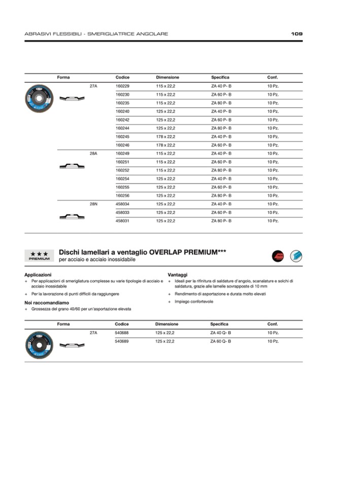 + Per applicazioni di smerigliatura complesse su varie tipologie di acciaio e