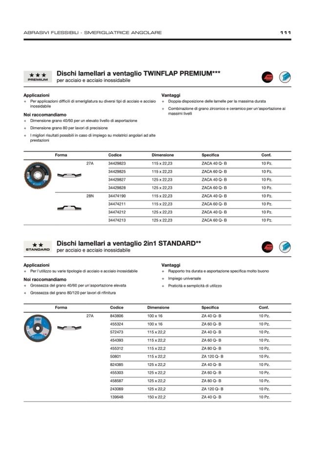 + Per applicazioni difficili di smerigliatura su diversi tipi di acciaio e acciaio