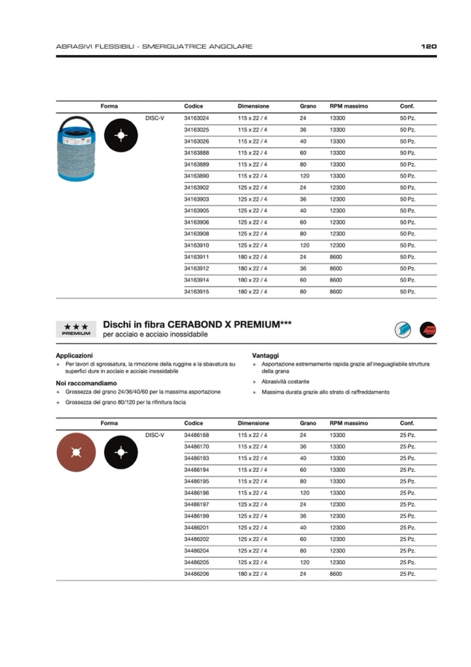 + Grossezza del grano 24/36/40/60 per la massima asportazione
