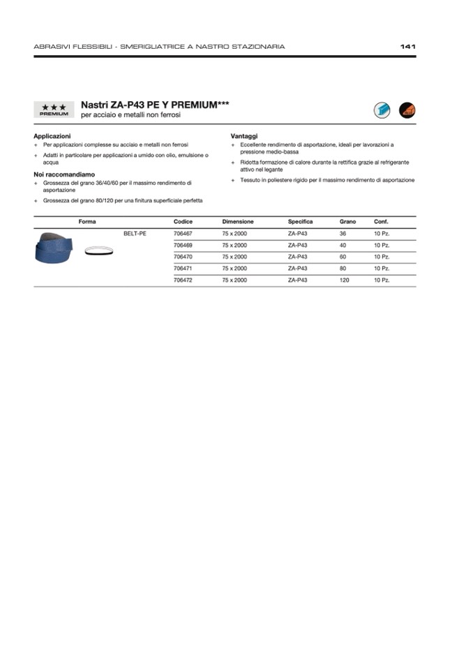 + Adatti in particolare per applicazioni a umido con olio, emulsione o