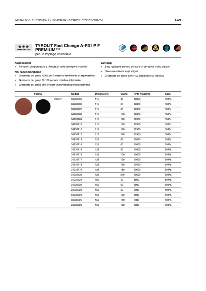 + Grossezza del grano 150-240 per una finitura superficiale perfetta