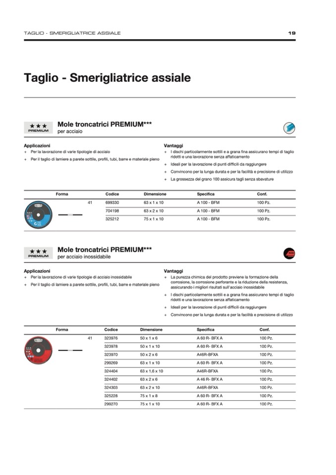 + I dischi particolarmente sottili e a grana fina assicurano tempi di taglio